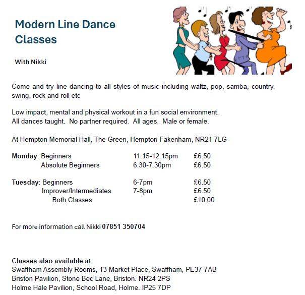 | 6:30pm Moden Line Dancing |